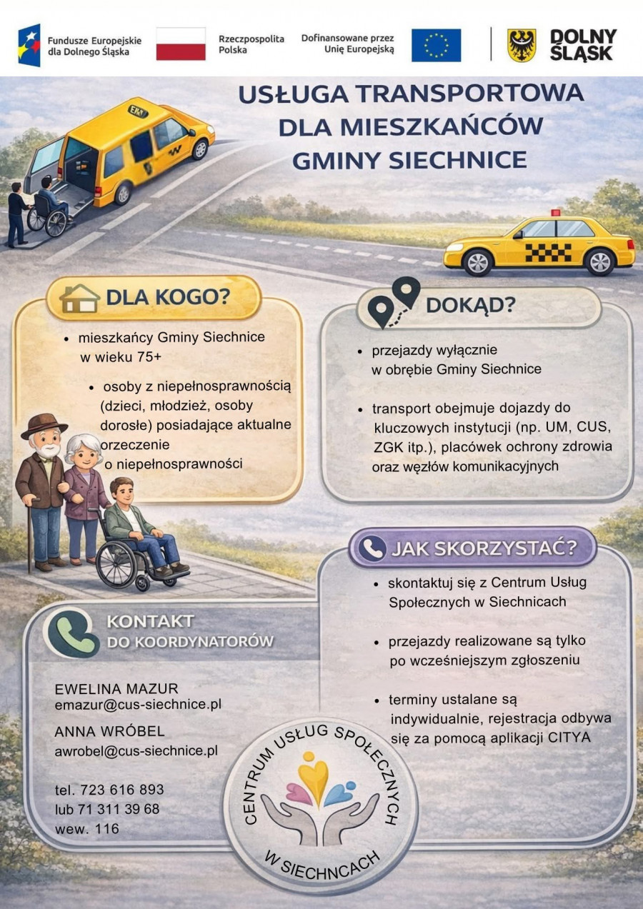 Darmowy transport w Gminie Siechnice – ułatwienie dla seniorów i osób z niepełnosprawnościami