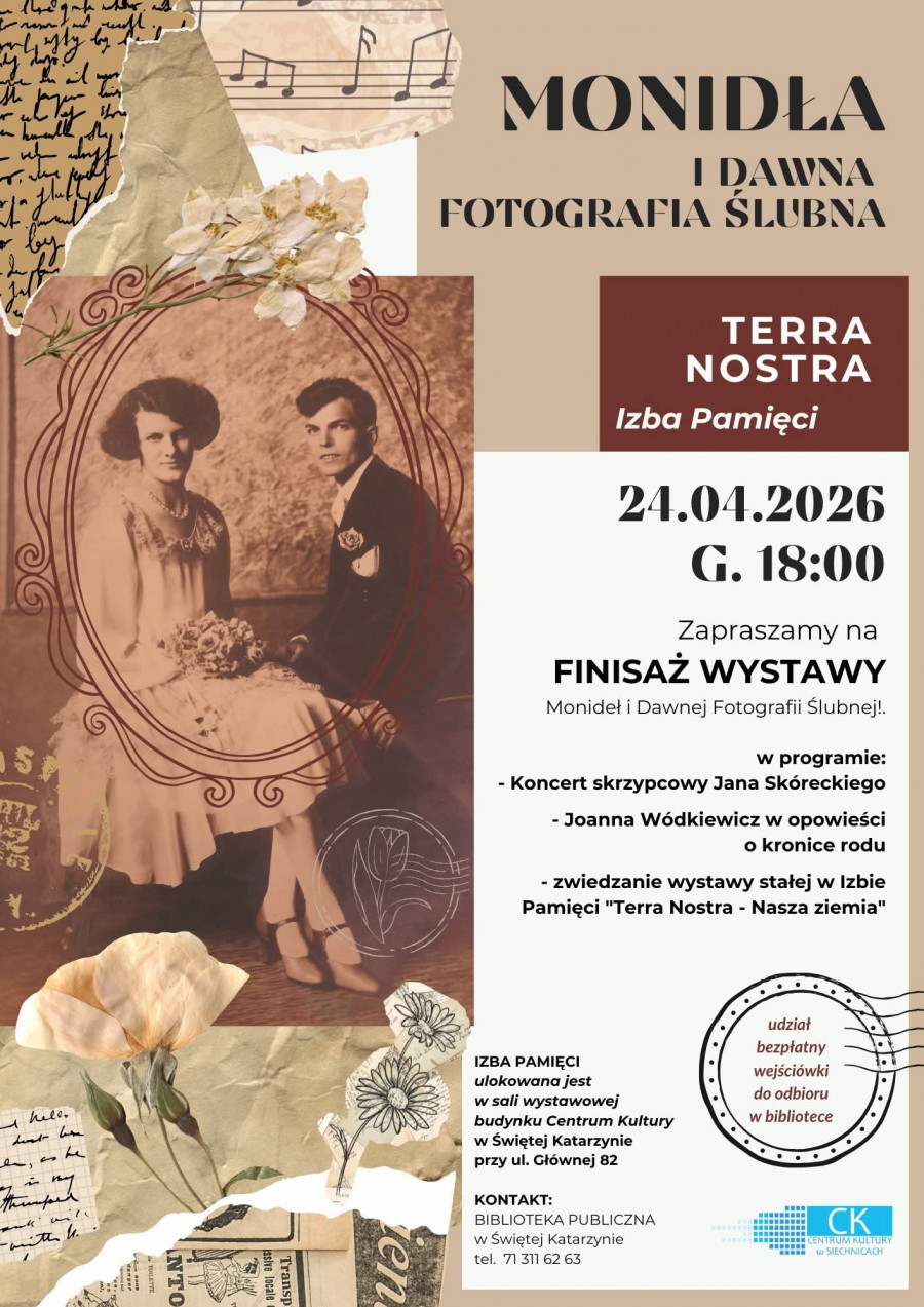 Finisaż stanowi nie tylko symboliczne zakończenie ekspozycji, ale także okazję do głębszego poznania tradycji związanych z dawną fotografią ślubną oraz niezwykłym zjawiskiem monideł – ręcznie kolorowanych portretów, które przez lata stanowiły ważny element rodzinnych pamiątek.