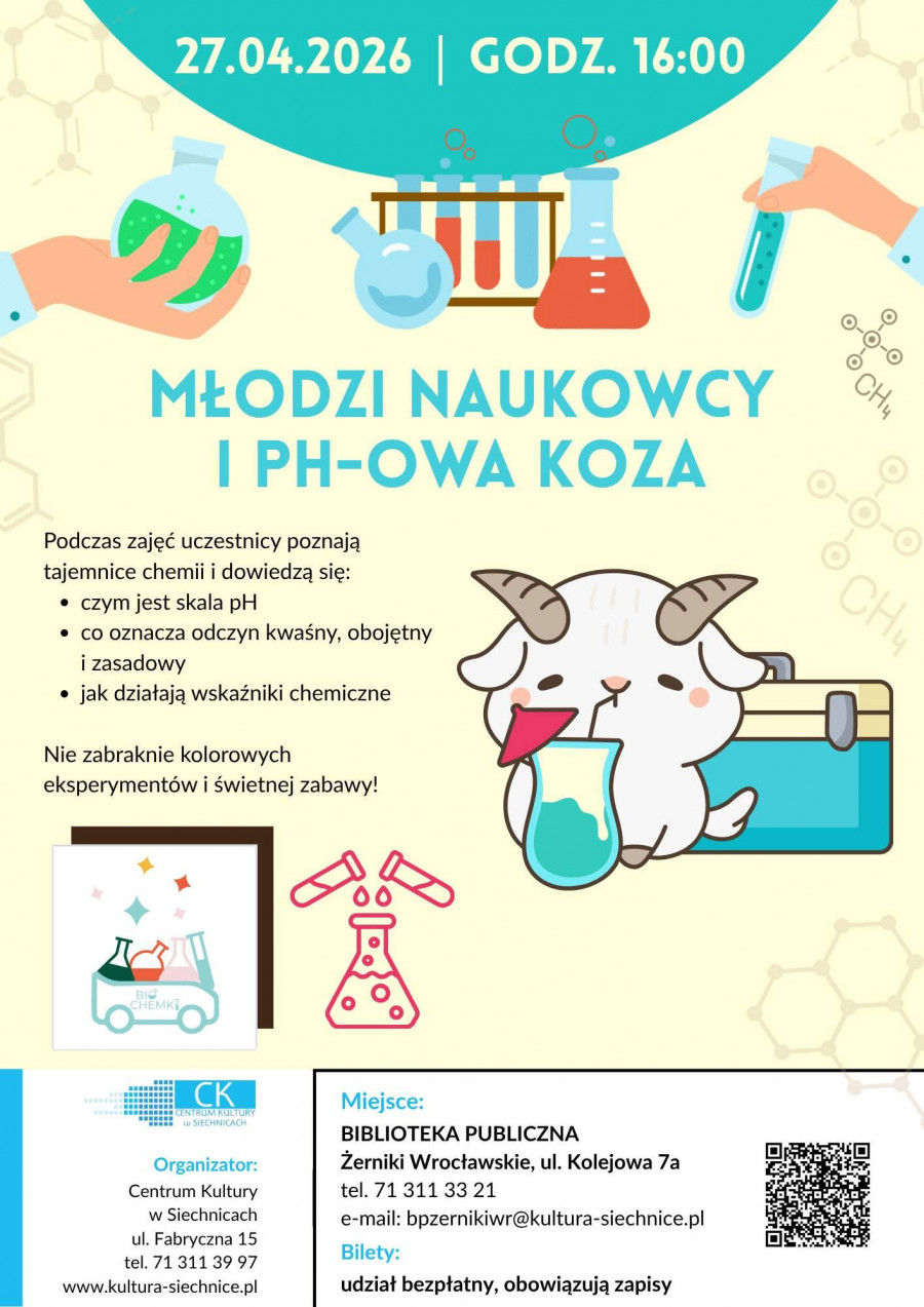 Zajęcia odbędą się w Bibliotece Publicznej w Żernikach Wrocławskich i są skierowane do wszystkich dzieci ciekawych świata oraz eksperymentów. Organizatorzy – we współpracy z Biochemki – przygotowali program, który w przystępny i angażujący sposób wprowadzi uczestników w podstawy chemii.