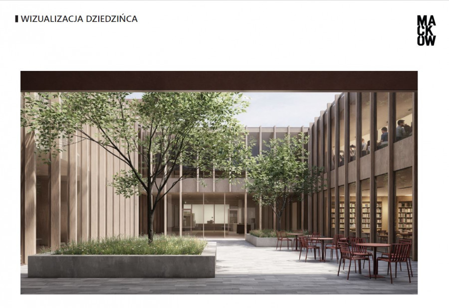 Budynek będzie miał formę nowoczesnego pawilonu z wewnętrznym dziedzińcem, który doświetli przestrzenie na wyższych kondygnacjach.
