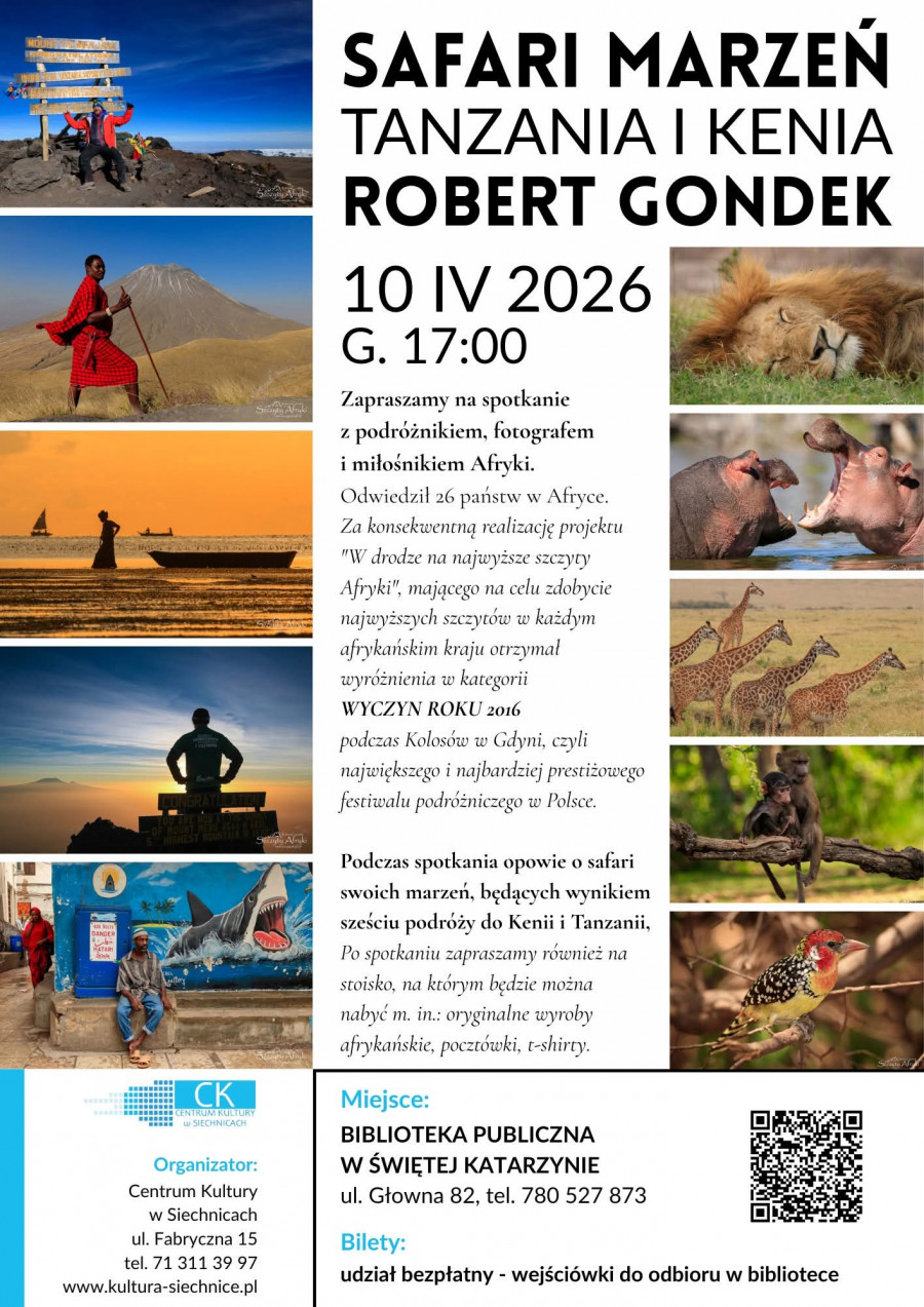 Safari marzeń w Bibliotece. Wyjątkowe spotkanie z podróżnikiem w Świętej Katarzynie