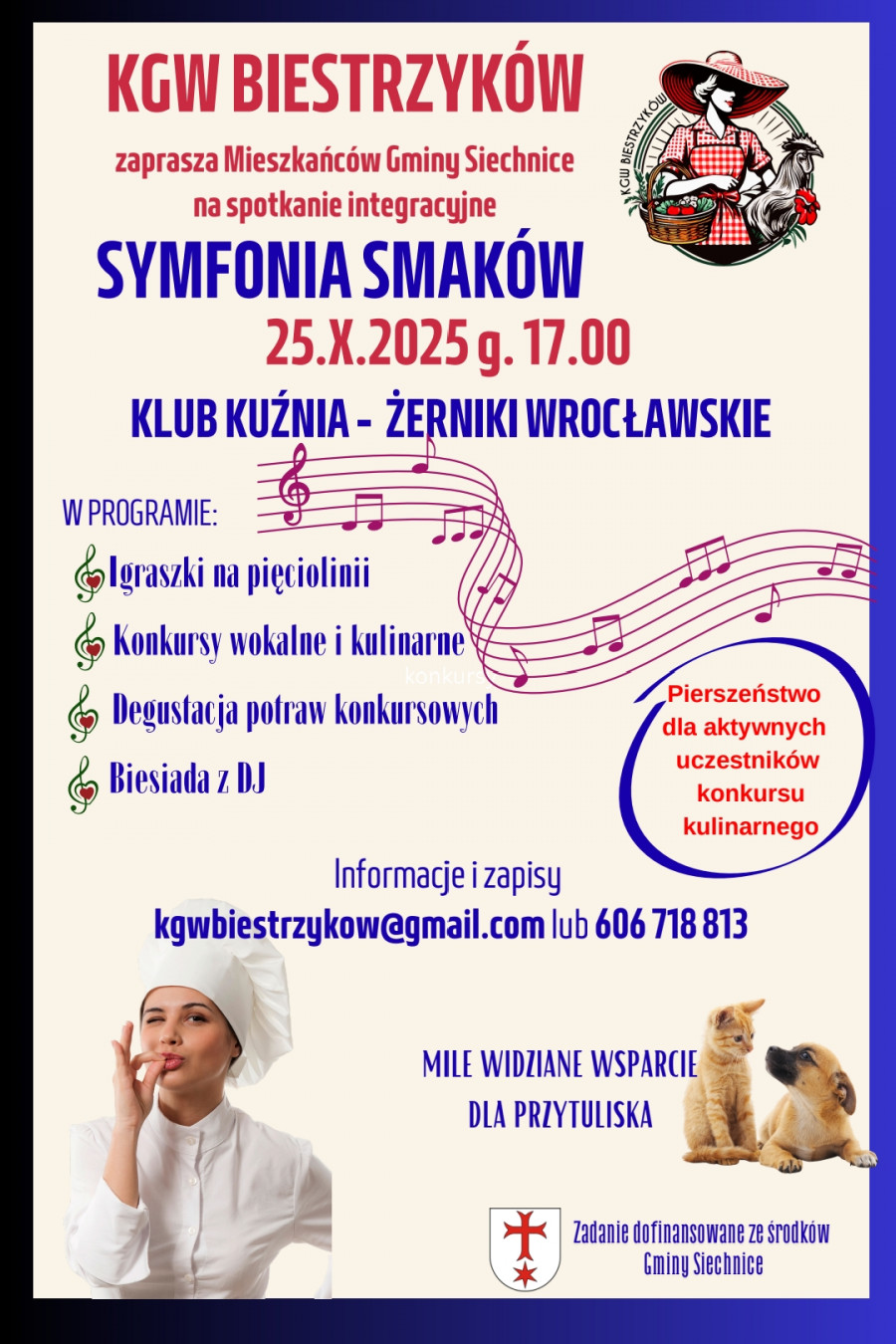 Koło Gospodyń Wiejskich Biestrzyków zaprasza wszystkich Mieszkańców Gminy Siechnice na kolejną imprezę integracyjną "Symfonia Smaków".