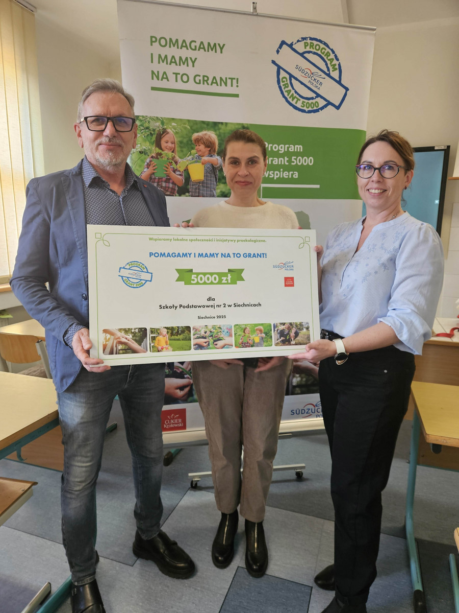 Wśród 6 organizacji, które otrzymały darowiznę podczas tegorocznej, jubileuszowej edycji programu Grant 5000, znalazła się Szkoła Podstawowa nr 2 w Siechnicach, zgłoszona przez pracowniczkę biura Südzucker Polska S.A. we Wrocławiu. Środki placówka ma przeznaczyć na modernizację sali biologiczno-chemicznej: doposażenie jej w wielofunkcyjny miernik jakości powietrza, zestaw do badania wody, a także pomoce dydaktyczne takie jak tablice ścienne i modele strukturalne pierwiastków. Nowe przyrządy mają pokazać dzieciom, że związki chemiczne tworzą otaczający ich świat oraz uświadomić je, że czyste środowisko naturalne można budować codziennymi decyzjami.
