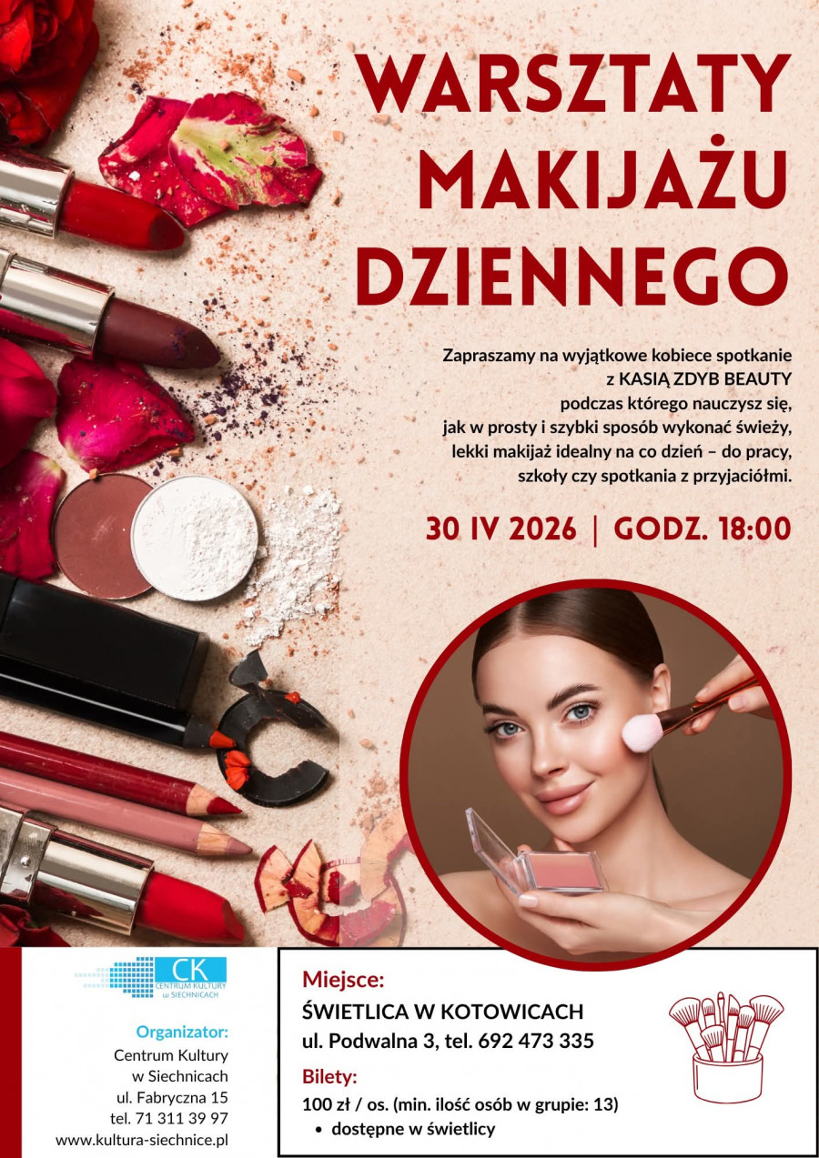 Zajęcia poprowadzi Kasia Zdyb Beauty, która podzieli się swoim doświadczeniem i pokaże, jak w prosty sposób wydobyć naturalne piękno.